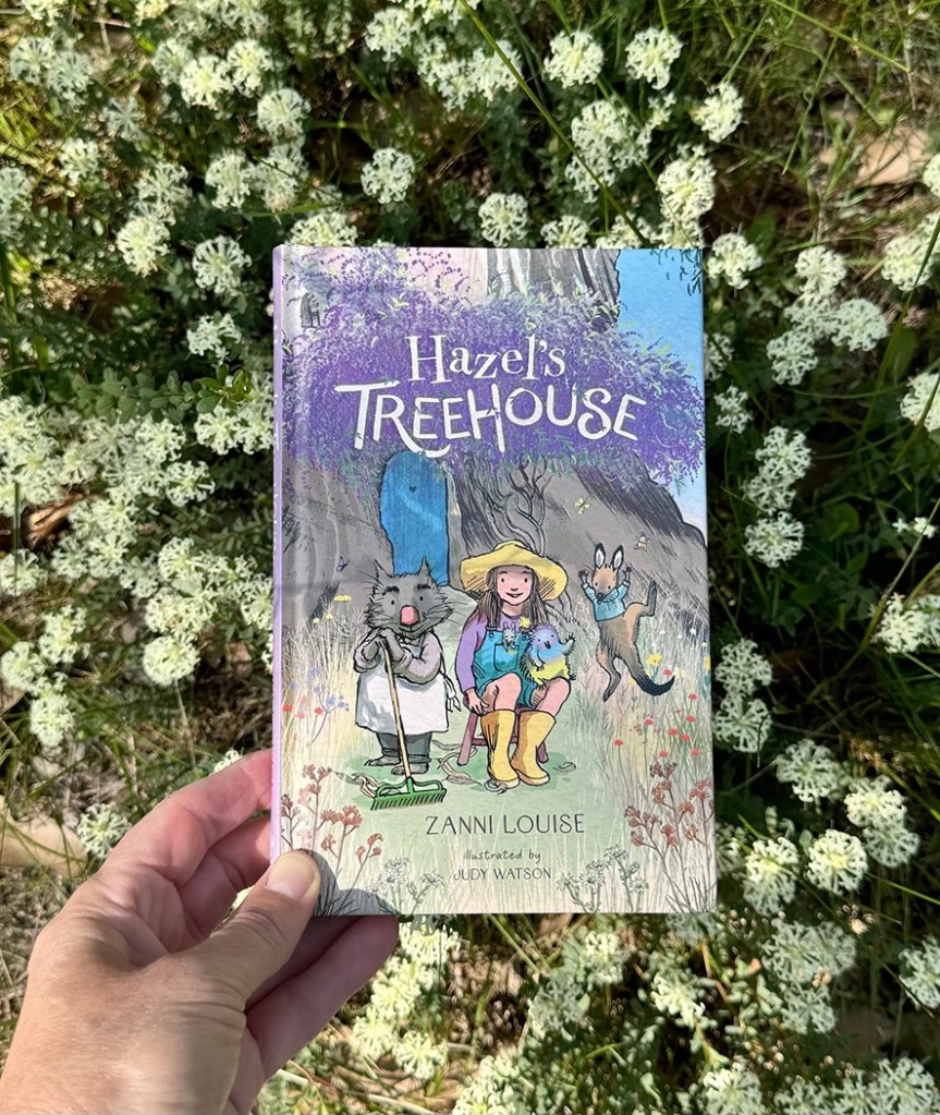 Hazel’s Treehouse is a new collection of gentle junior fiction stories from Walker Books Australia. It’s written by Zanni Louise, illustrated by me in dip pen and ink and it’s wrapped in flowers from its embossed hard cover and purple endpapers, through each of the ten stories to the creator biographies at the end.