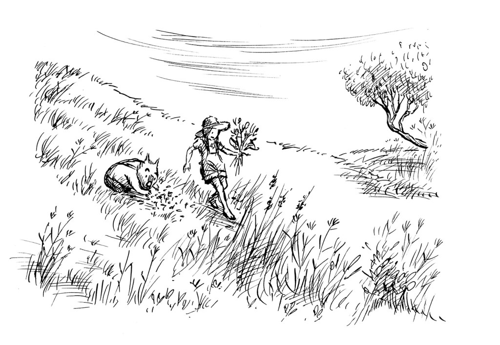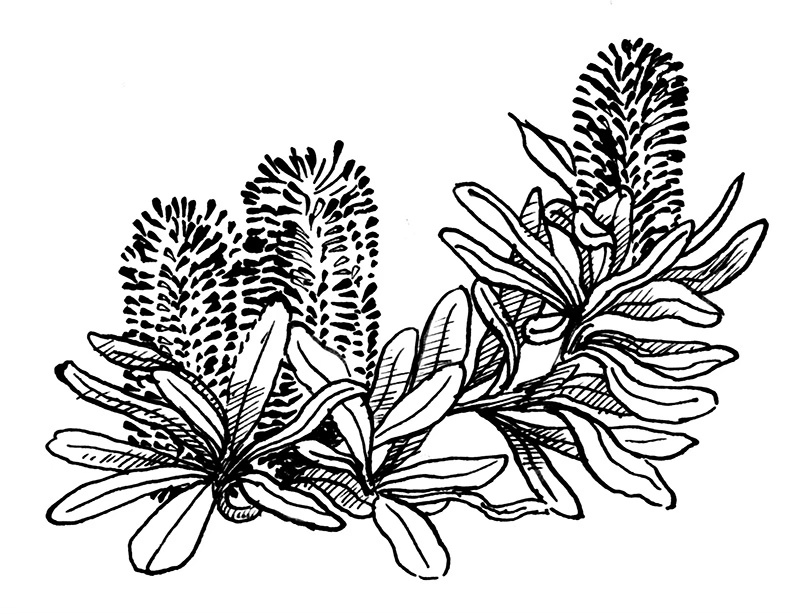 Zanni referred to several Australian flower species in her text, and because I had worked in nature conservation and had a horticultural husband brimming with indigenous plant nerdiness, it was an easy thing to embrace those references and run with them. I chose a plant to begin each story – whichever seemed the best fit (and that I felt capable of drawing!) Some of them were mentioned in the text and some were appropriate for other reasons. Christmas Orchids (Calanthe triplicata) adorned the Christmas story ‘A Very Tiny Day’. Coast Banksia (Banksia integrifolia) was used for ‘A Beach Day’ – even though the gang never made it to the beach. (You’ll have to read it to find out what they did instead, but they still managed to use their goggles and flippers.) Sometimes, if there was no obvious link, it was an opportunity for me to feature some of my personal favourites, like Hibbertia or Pimelea.
