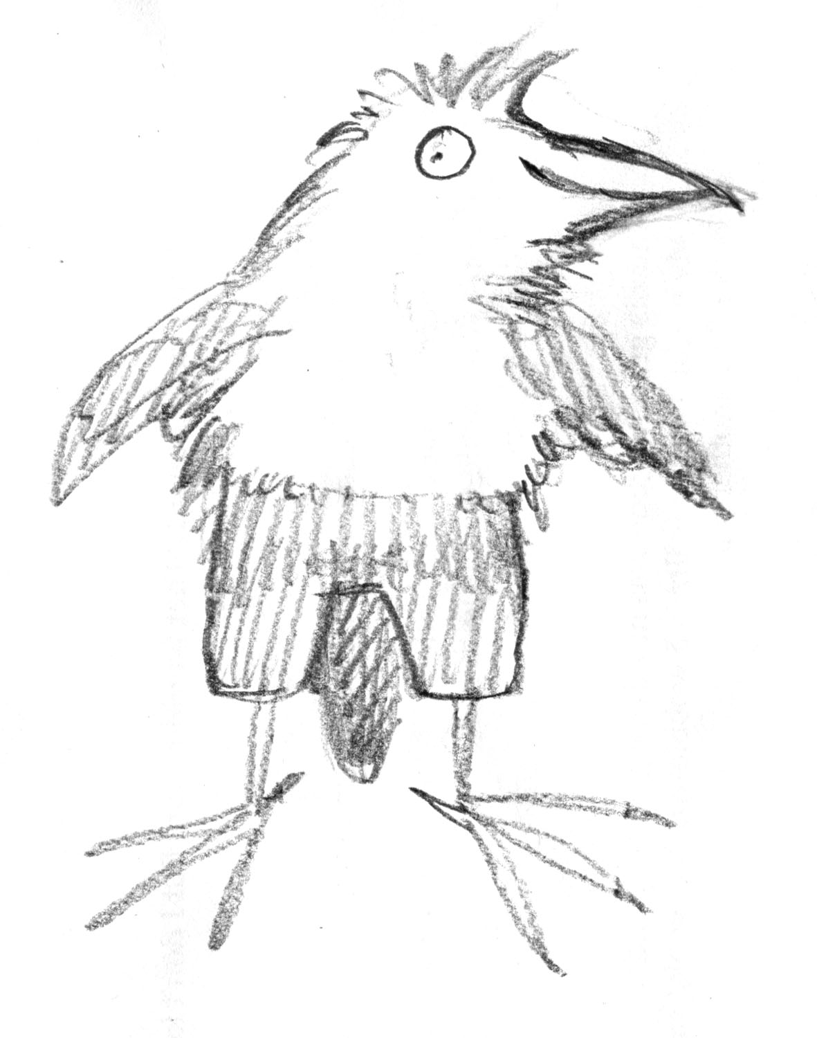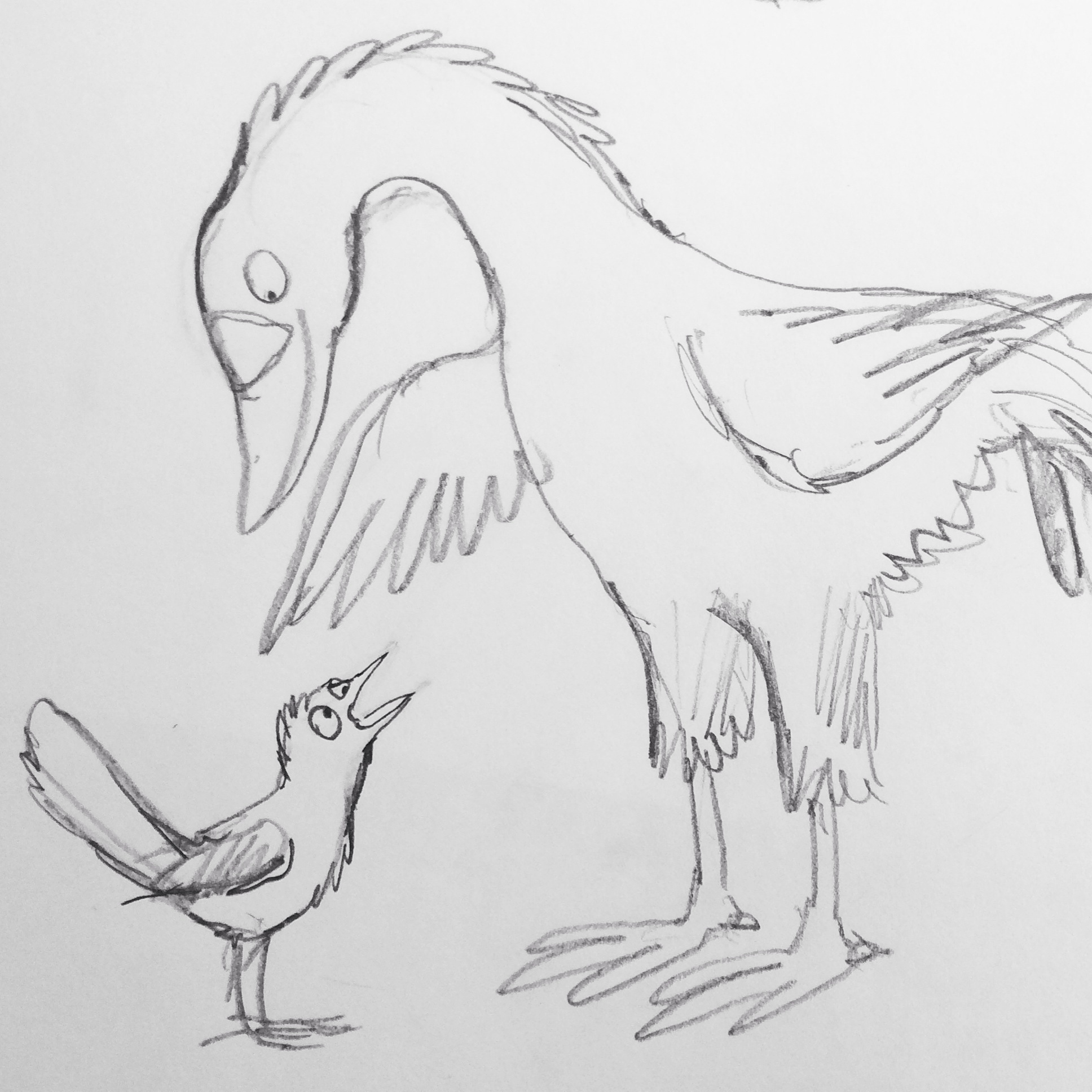 The drawing for this one had been done early on, (see the sketch at the top) and my ‘Leonard shorthand’ had developed since then. Later on, he had a longer, narrower neck, looser curves on his toes (yes, I actually think about those things) a smaller body and bolder black and white contrast – he looks less fuzzy and soft in later illustrations.