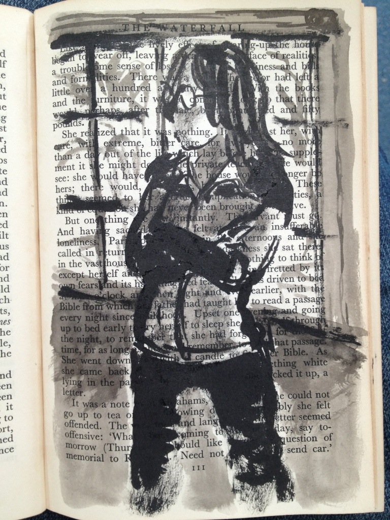 Poppy and Hilda side by side on the perch. Feathers fluffed as they preen themselves. This little boy has cleverly drawn Hilda’s head reaching back over her shoulder to preen.