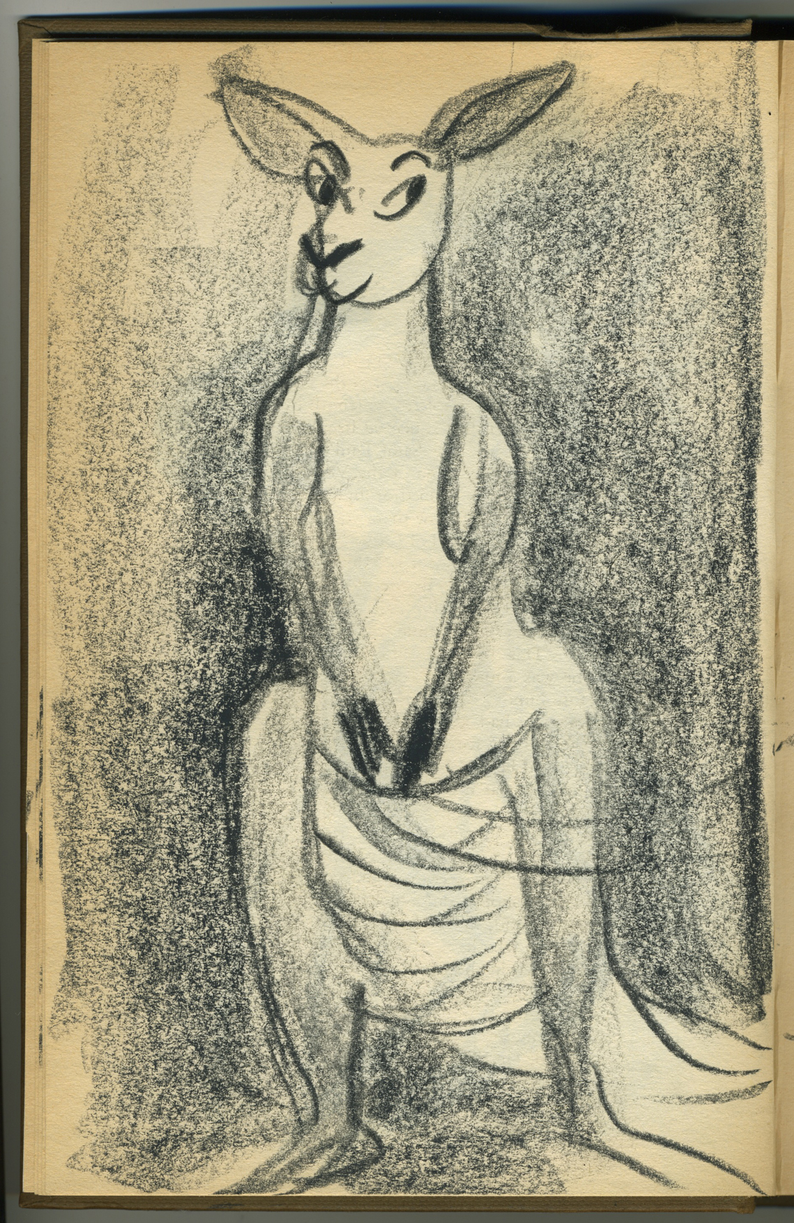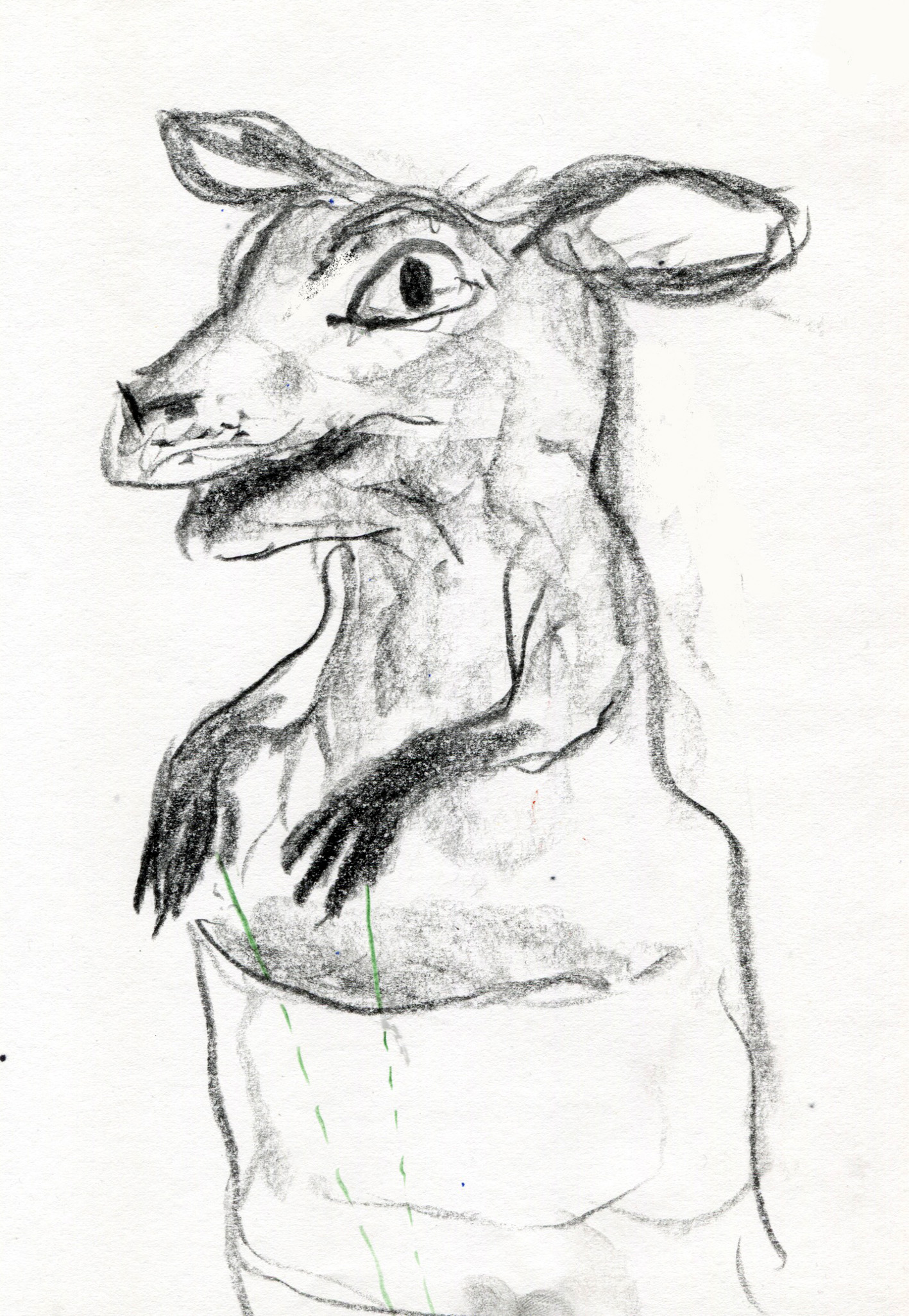 Here’s Greyfur the Kangaroo from Alan Marshall’s Australian fairytale Whispering in the Wind. I drew some sketches of her a while back as a beginning to my concept for a puppet for Clive Hicks-Jenkins’ Puppet Challenge.