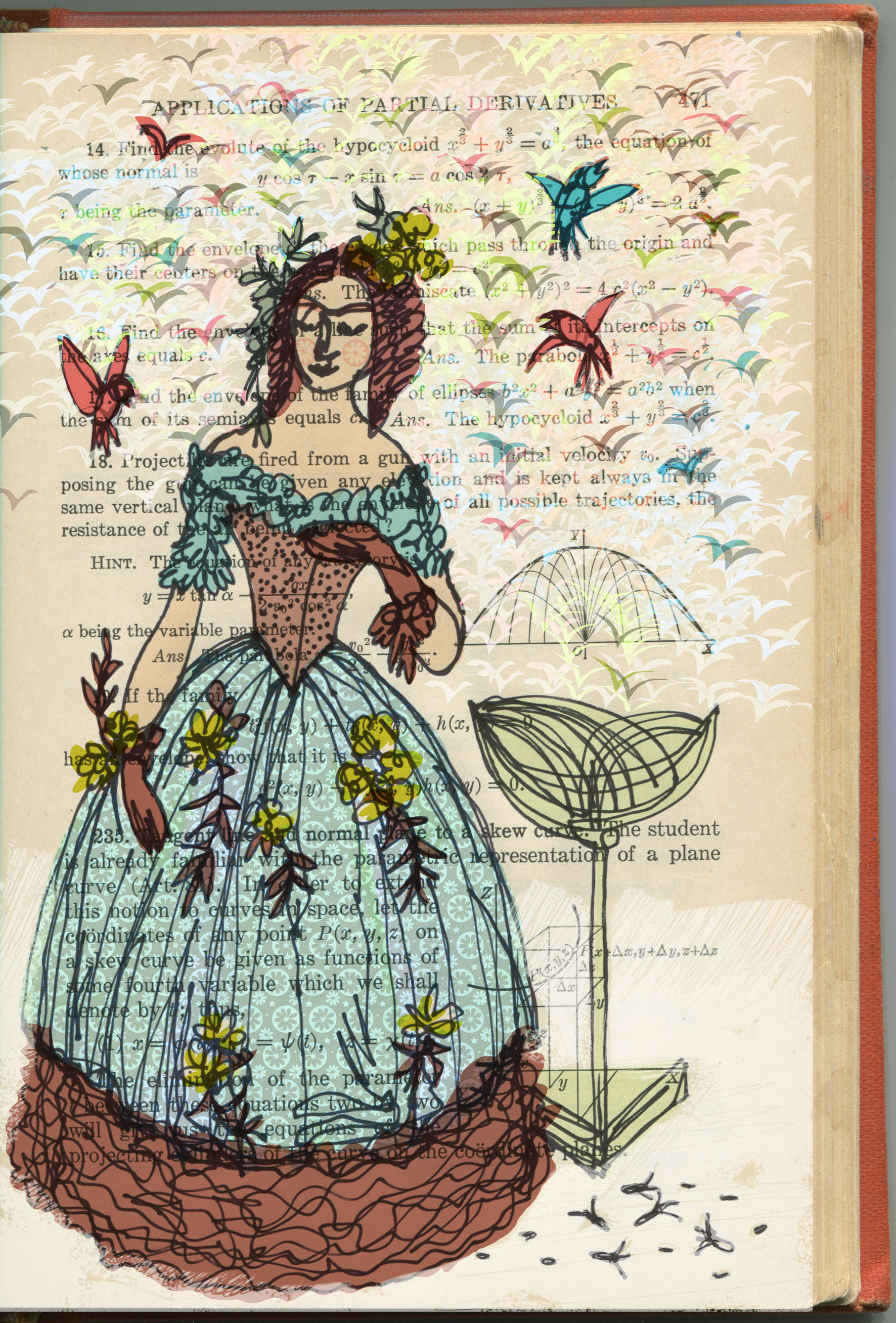 I preferred my second go. It was very quickly drawn in the old Calculus book, with a bit of wash added after the Prismacolour artstick.