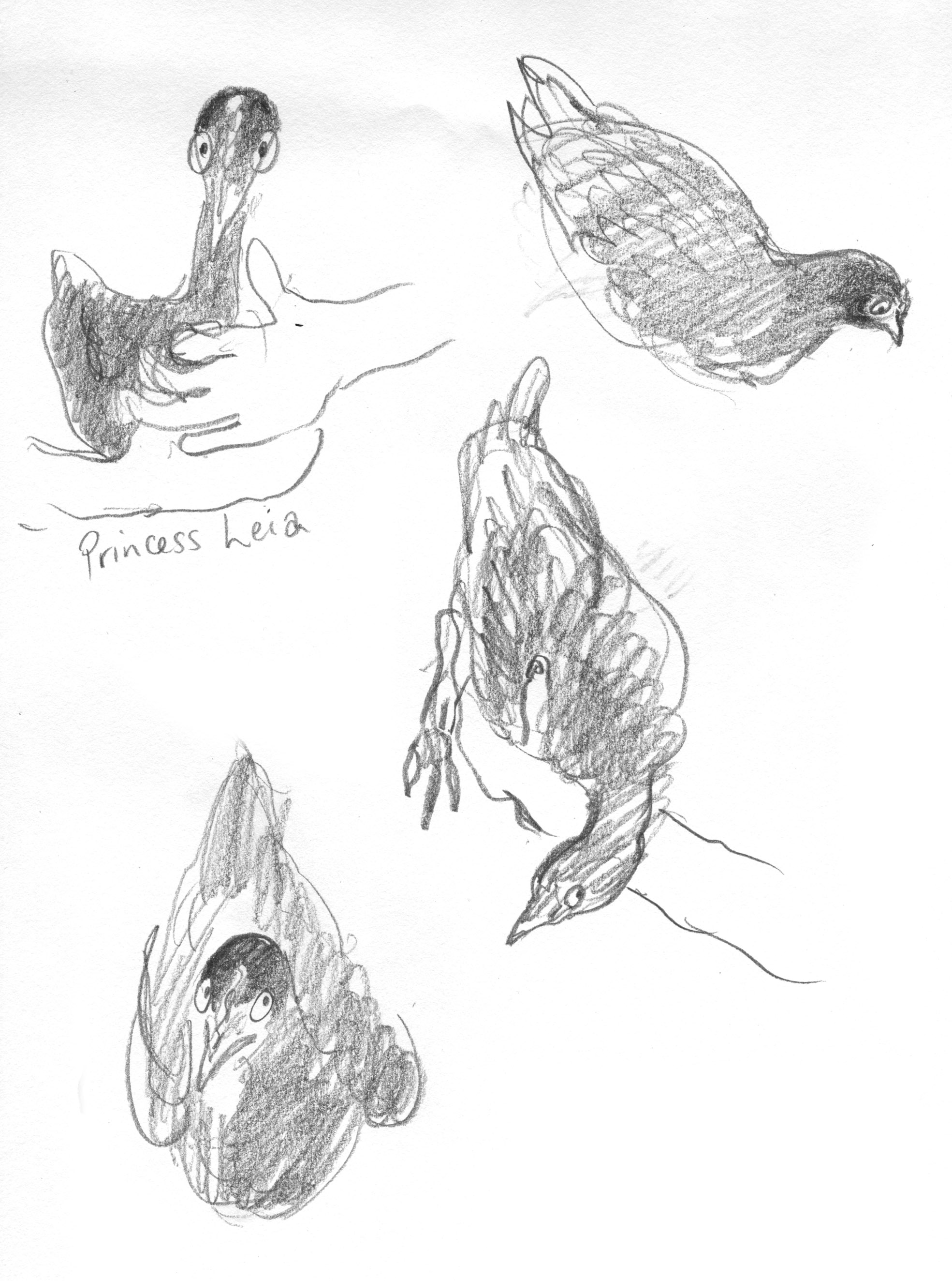 The bird I wanted (rear). Too precious for the artist to part with. On the shelf below are little owls that hoot charmingly when you blow into them.